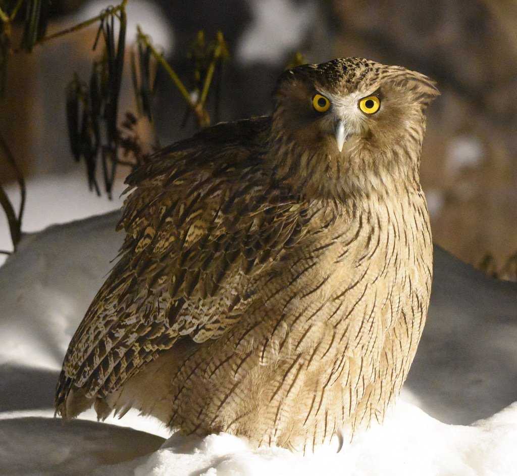 Рыбный филин Вес: 4 килограмма. Размер: 70 сантиметров. Размах крыла: 180 – 190 сантиметров. Окрас: бурый, рыжий, бежевый. Где обитает: Корея, Магадан, Дальний Восток, Хоккайдо, Сахалин, Приморье.