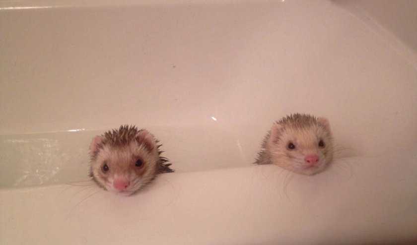 Что касается купания фретки, то оно должно быть не слишком частым, так как данный процесс может провоцировать усиление специфического запаха домашнего любимца. К тому же, если ваш питомец не очень любит водные процедуры, то купания в количестве 2 раз в год будет вполне достаточно.