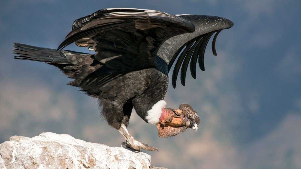 Помимо огромных размеров, кондоров можно узнать по черному оперению, белому воротничку и лысине. Их купола без перьев эволюционировали в целях гигиены, предотвращая попадание бактерий от трупов, оставшихся на теле.