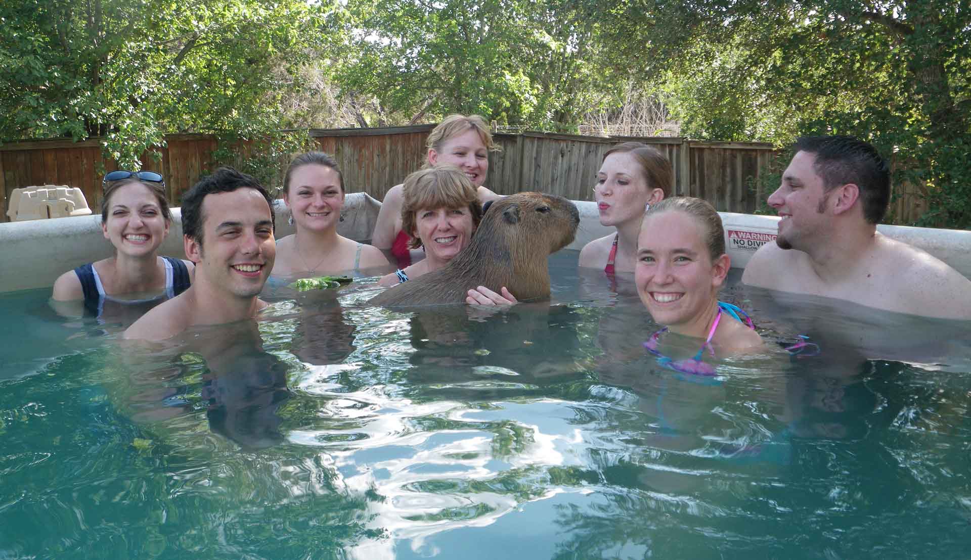Вся жизнедеятельность этого уникального зверька капибара связана с водой. Вода помогает утолить жажду и голод, а также регулировать температуру тела. В воде млекопитающее капибара отдыхает и принимает грязевые ванны, а также размножается.