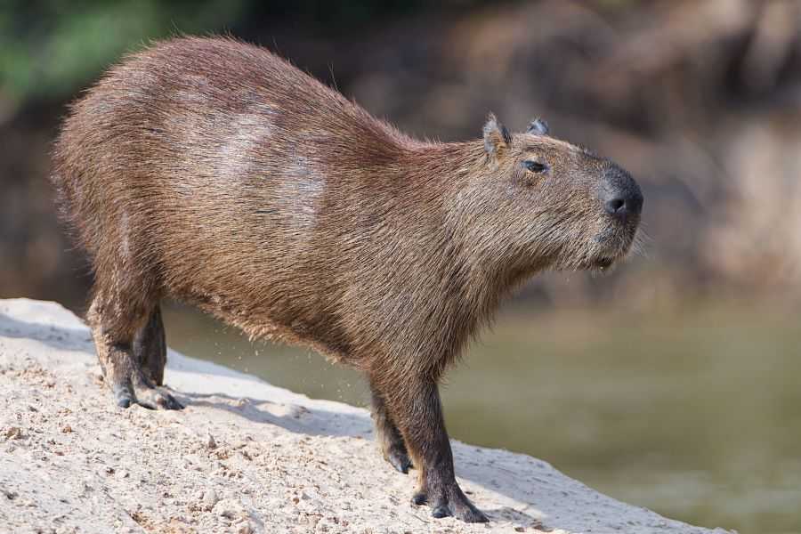 Капибара — самый большой грызун на свете. Внешне она напоминает всем знакомую морскую свинку, только увеличенную во много раз. Капибара вырастает в великана до 60 см в холке и весит около 60 кг.