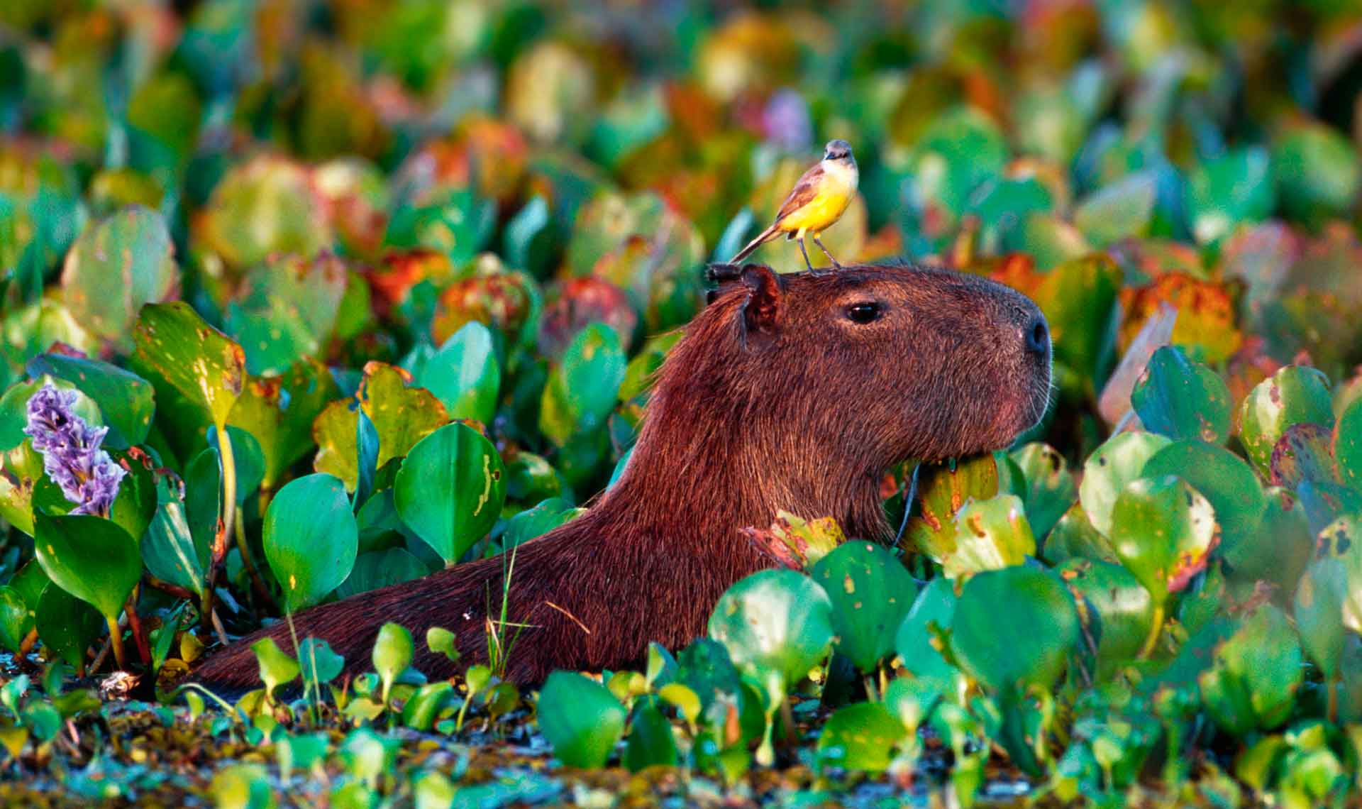 Капибара или водосвинка (Hydrochaeris hydrochaeris) это растительноядное из отряда свинковых. По некоторым данным, предки современной капибары жили ещё 40 миллионов лет назад на территории Южной Америки и были размером с небольшого бычка. В дикой природе животные предпочитают селиться вблизи воды, где достаточно пищи для выращивания потомства. Ближайшие родственники — это горные и домашние морские свинки.