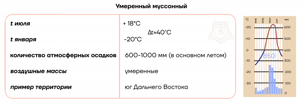 - Осадки будут сезонными. Так, если летом действуют умеренные возд. массы → будут осадки (небольшие).