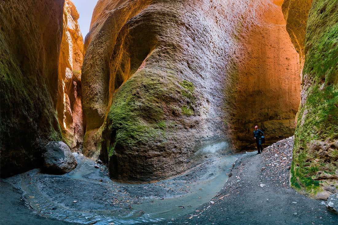 Если учесть, что высота отполированных скал 150 метров, ощущение такое, стены теснины сейчас сожмутся как тиски. В вечном полумраке зловеще нависают валуны. В прошлом столетии внизу возвели плотину, и теснина наполнилась галькой и песком.