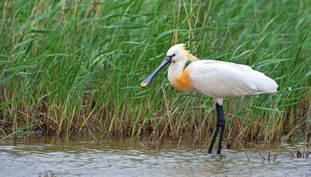 Уязвимые виды из отряда аистов. Длина тела до 95 см, а размах крыльев 115-135 см. В этом районе гнездится на реке. Кубань, занимает восточное Приазовье. Обитает колпица вблизи соленых и пресноводных водоемов. Население до 400 пар. Уменьшение численности связано с нарушением условий жизни птиц и развитием хозяйственной деятельности.