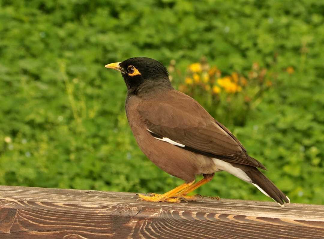 Индийский скворец, или майна, внешним видом и поведением очень похож как на обыкновенного скворца, так и на галку.