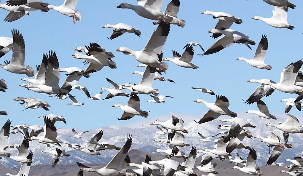 Высота полета достигает 1,5 км, так как в этом воздушном пространстве разряженный воздух, имеющий наименьшее сопротивление. А вот горные гуси взлетают на 1000 км над уровнем моря. Мигрируют они в Индию и им приходится пролетать над Гималаями (высота гор — 9 тысяч метров).