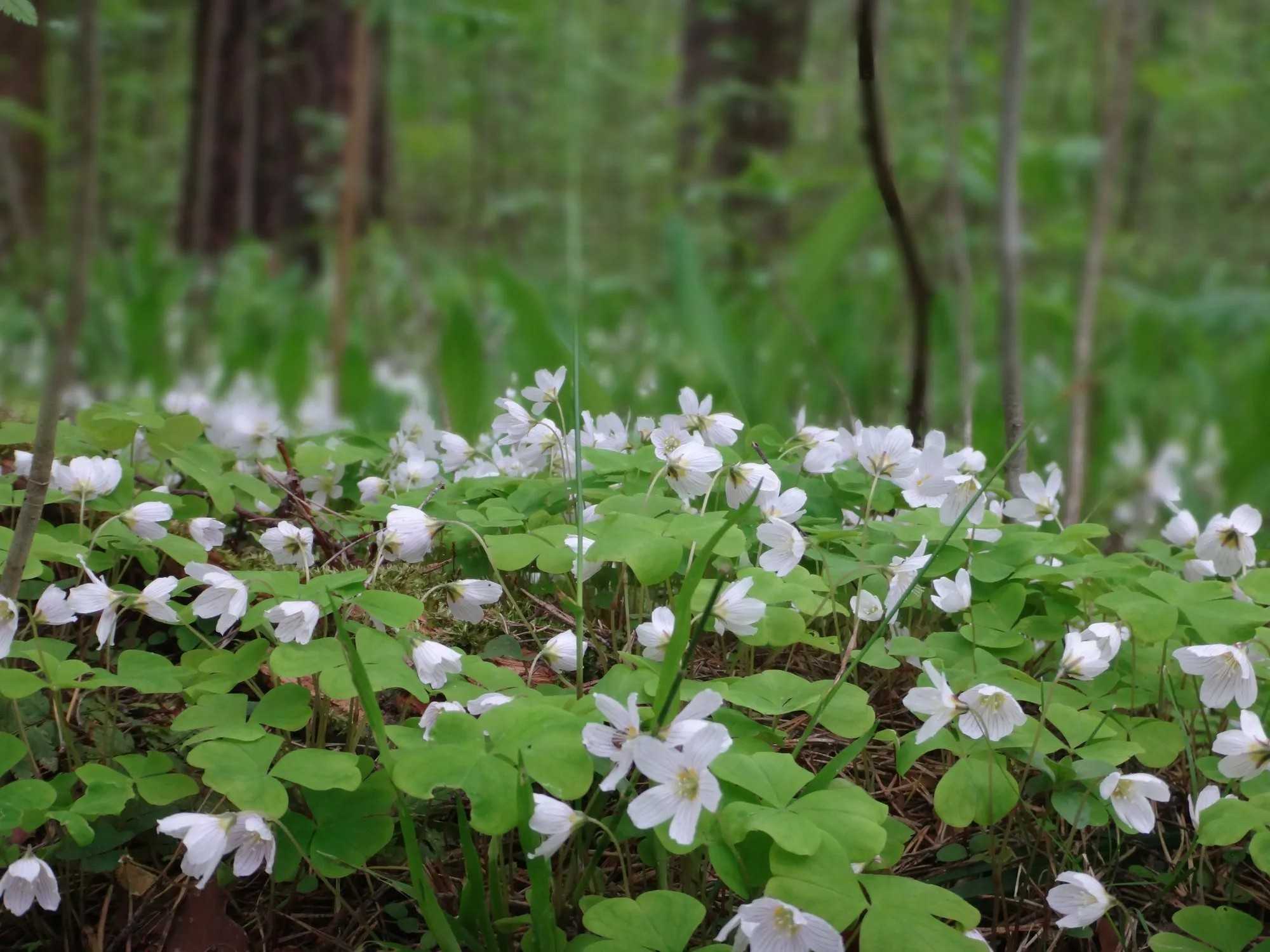 Высота вековых деревьев в тайге препятствует попаданию солнечного света, поэтому практически отсутствует подлесок, зато наблюдается много мохового покрова, на котором замечательно растут кустарники: можжевельник, жимолость, черника, брусника. В тайге также растут лекарственные растения и травы, такие как кислица и грушанка.