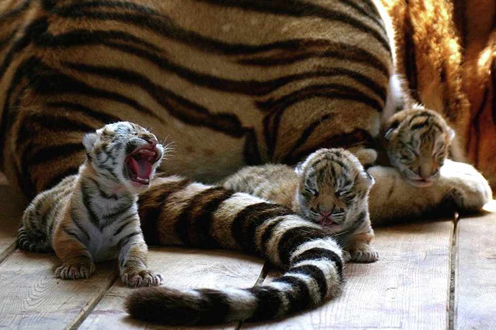 Тигрица приносит потомство в лучшем случае один раз за два года.