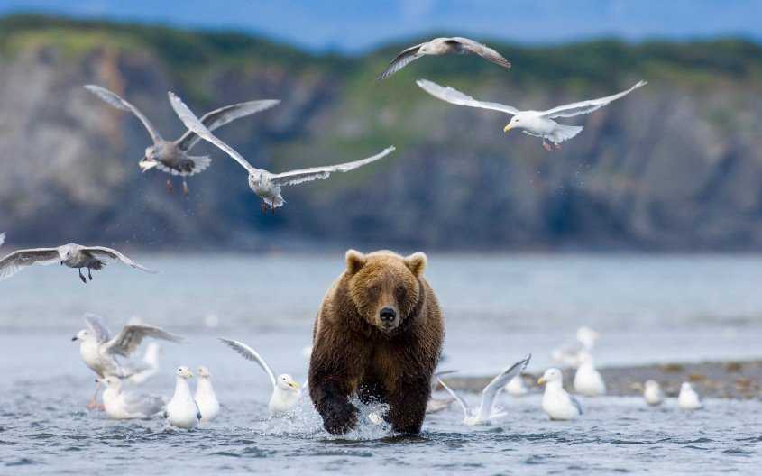 Хоть бурые мишки, так же, как и лоси, живут по всей Евразии, только в озерном заповеднике они – настоящие короли природы. Длина тела этих красавцев, живущих у вод Байкала – 2,5-3 метра, высота в холке от полутора метров. Зверь это важный, оседлый, неторопливый. Однако, при необходимости, легко пройдет в поисках пищи до 300 км, а потом вернется обратно.