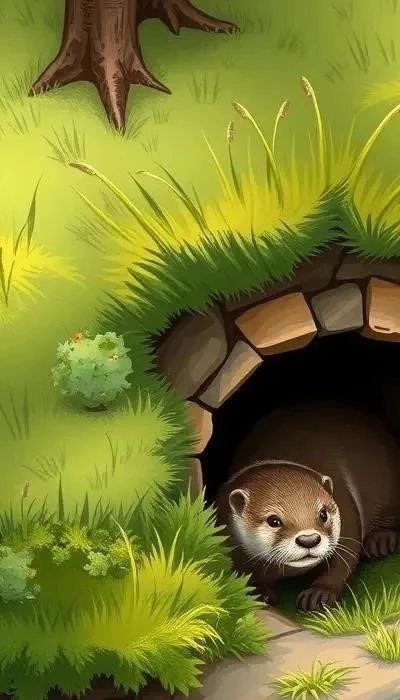 - В норах: Выдры охотятся на грызунов и других мелких животных, проникая в их норы.
