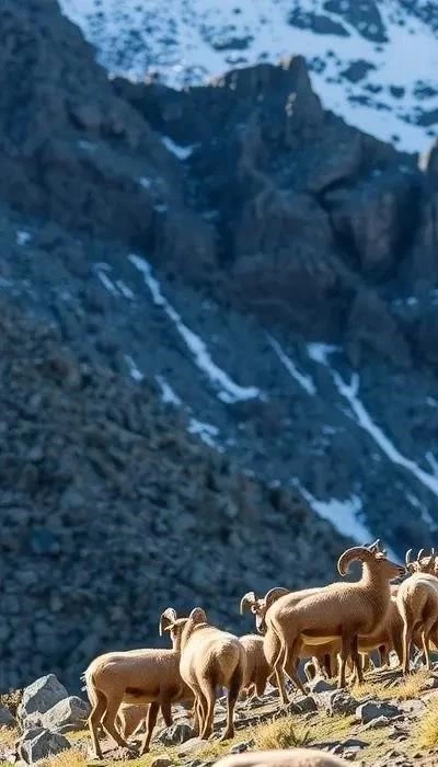 Горные бараны прекрасно адаптированы к жизни в суровых горных условиях. Они обладают мощным телосложением, позволяющим им перемещаться по крутым склонам. Густая шерсть защищает от холода, а копыта обеспечивают устойчивость на каменистой местности. В зимний период, когда корма мало, бараны мигрируют в поисках пищи, часто спускаясь в предгорные районы. Они способны выживать в условиях недостатка кислорода и резких перепадов температур.