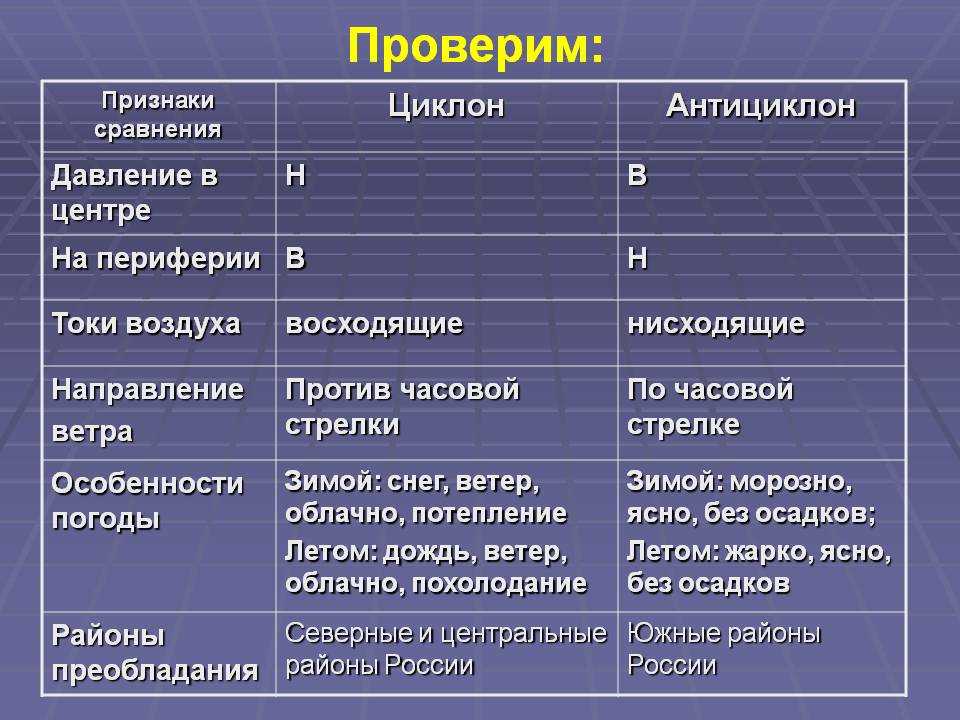 Сравнение циклонов и антициклонов