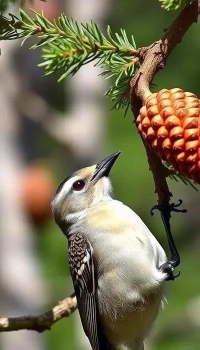 Клесты – настоящие акробаты. Они умело подвешиваются к веткам вниз головой, чтобы добраться до семян в шишках. Используя свой мощный клюв, они раздвигают чешуйки шишек и извлекают семена. Клесты также используют свои лапы для удержания на ветках и шишках. Они могут проводить много времени, кормясь на одном дереве, перелетая с ветки на ветку в поисках наиболее богатых шишек.