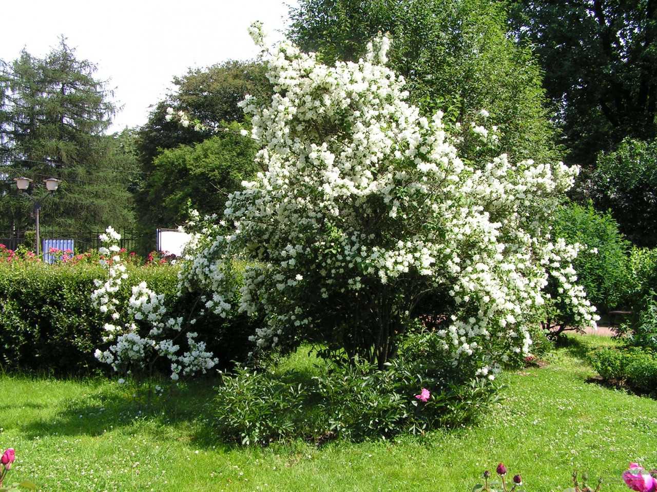 - Кустарник с белыми цветами, образующими своеобразную розетку в мае-июне. Плодоносить начинает с 4 года.