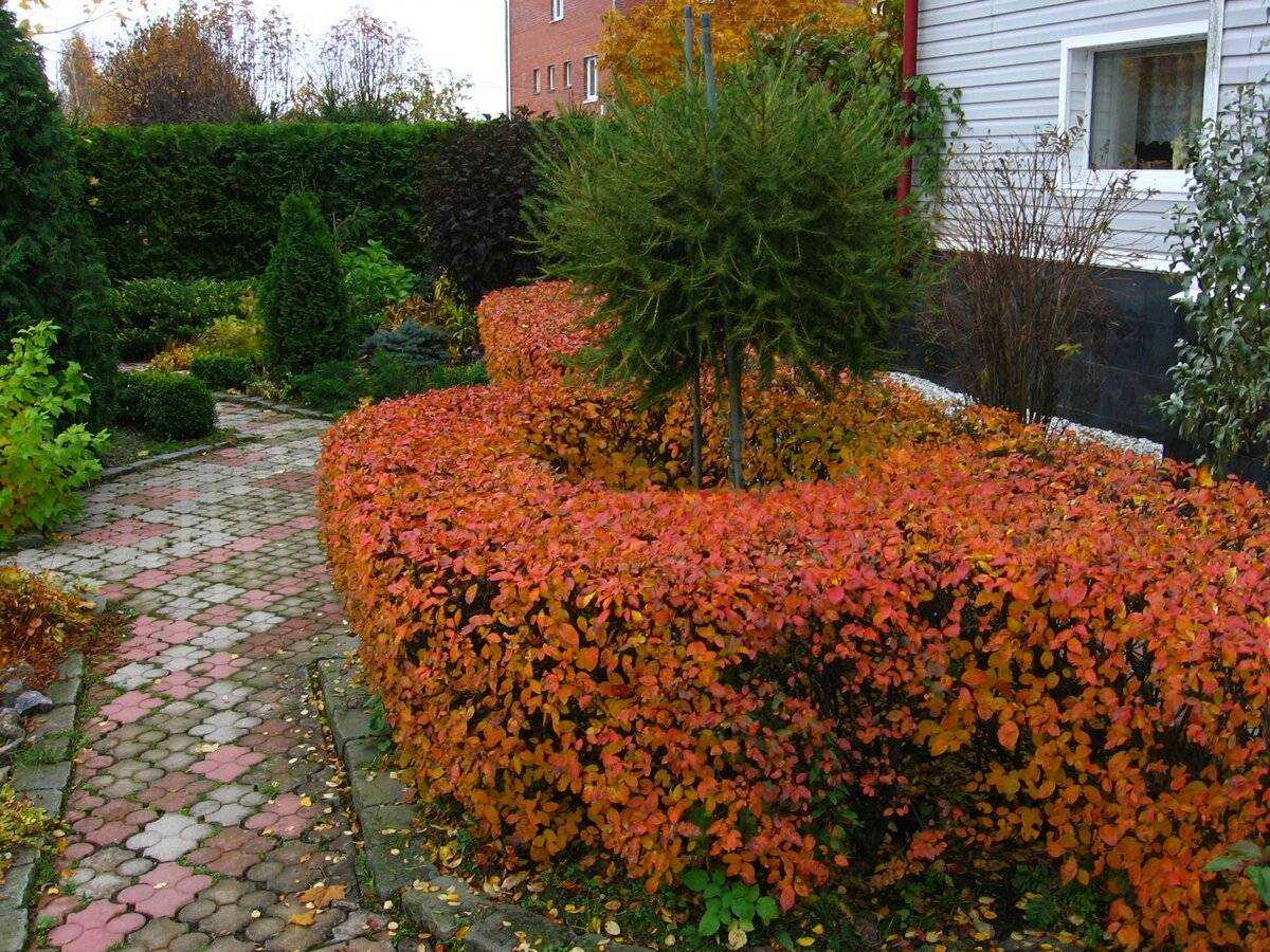Высота растения составляет 60-200 см. Низкорослые декоративные кустарники для дачи используют при оформлении горок, более высокие – для живой изгороди. Особенно выразительно смотрится на зеленом газоне, удачно сочетается с хвойными растениями.