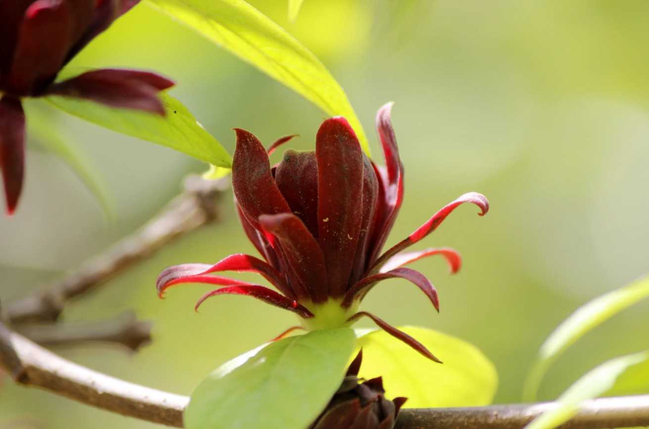 Ветки отличаются своим окрасом в красно-бурую палитру, а зеленые листья меняют свой цвет на красно-фиолетовый в конце лета.