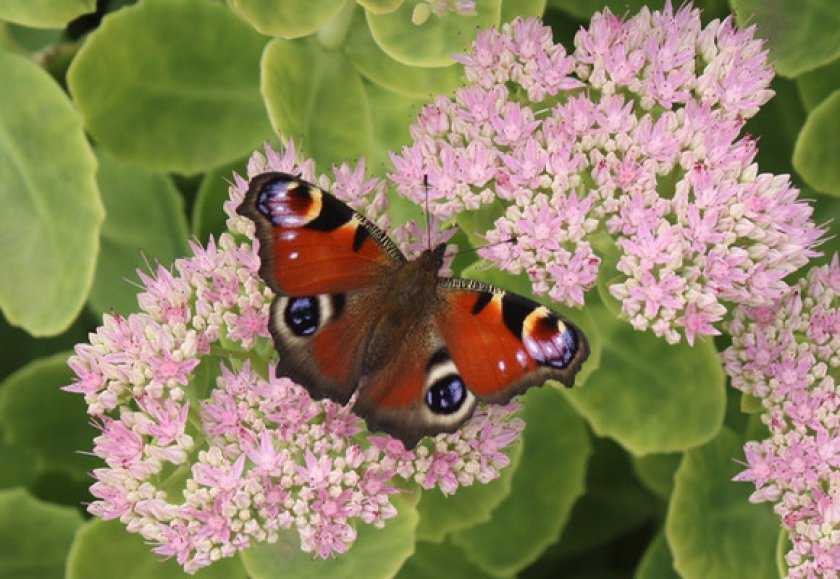 Павлиний глаз на соцветии очитка.
