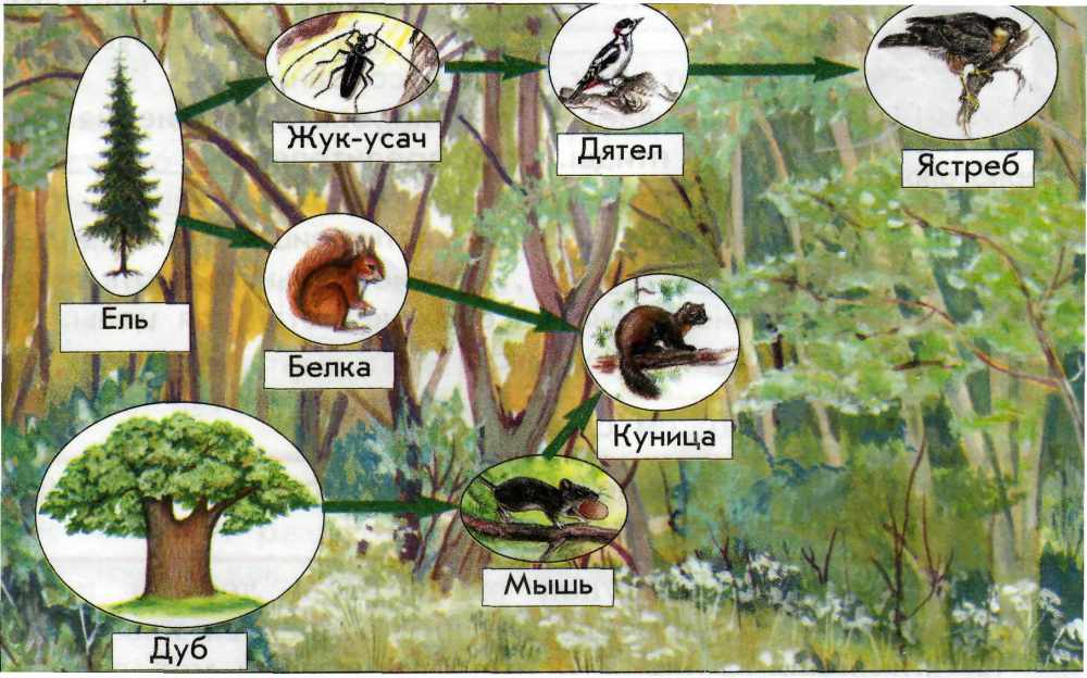 Обычная цепь питания в широколиственных лесах составлена из трех-четырех ниш: