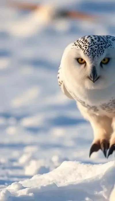 Внешний вид полярной совы впечатляет. Взрослые птицы имеют преимущественно белое оперение, которое обеспечивает отличную маскировку в снежных ландшафтах Арктики. У молодых особей оперение более темное, с пятнами и полосами, которые постепенно исчезают с возрастом. У сов большие, ярко-желтые глаза, которые обеспечивают отличное зрение в условиях низкой освещенности. Мощные когти и клюв приспособлены для захвата и разрывания добычи.