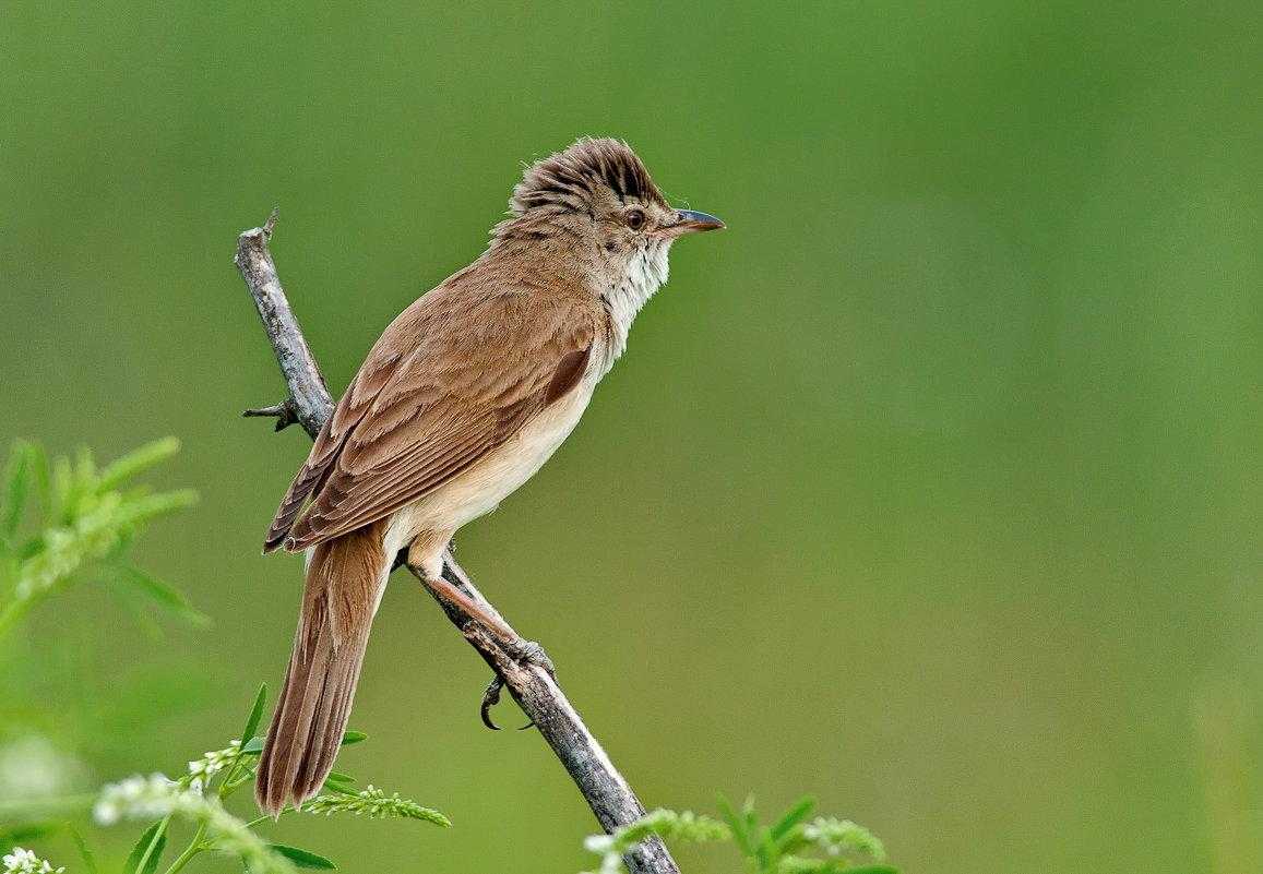 Садовая камышевка – ее длина в среднем достигает 15 см (максимально 17 см). Вес от 9 до 15 г. Характерной особенностью этой особи является имитация голосов других птиц.