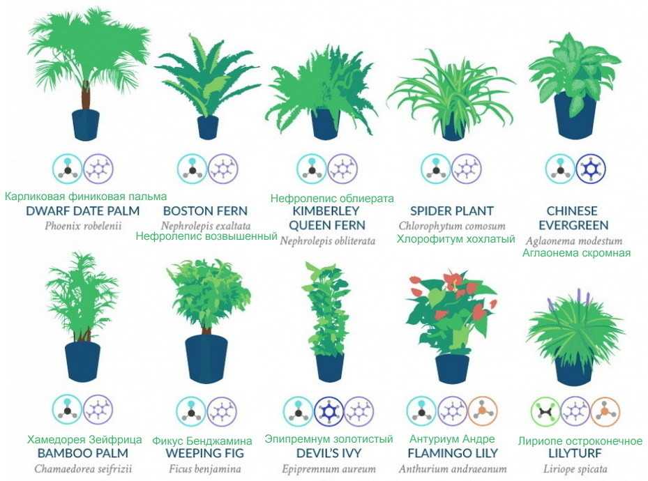 На мой субъективный взгляд весьма странная подборка растений. Почему нет бегонии, орхидеи, замиокулькаса или оксалиса?
