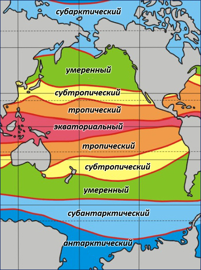 В Тихом океане выделяют следующие водные массы: