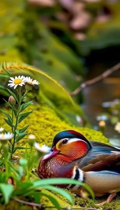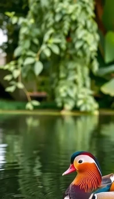 Утка-мандаринка (Aix galericulata) – одна из самых красивых уток в мире, известная своим ярким и необычным оперением. Самцы мандаринки в брачном наряде – настоящее произведение искусства. Их голова украшена каштановым «чубом», зеленая полоса проходит через глаз, а бока и брюшко имеют красновато-оранжевый оттенок с вертикальными белыми полосами. Спина – черная с синеватым отливом. Крылья имеют сложные узоры из различных цветов. Размер самца – около 41-46 см в длину, вес – 400-550 грамм.